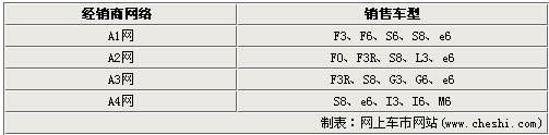 另据了解,比亚迪M6将在A4网中销售,其他车型还包括I3、I6等未上市新车和e6新能源车,已上市的只有S8跑车。而A1、A2、A3网络的新车推出规划已经接近完成,只有像S6、G6等少数车型未上市销售。