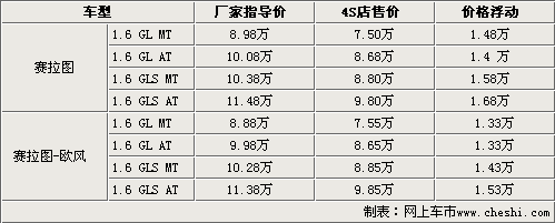 在调整完售价后,赛拉图及赛拉图欧风GL低配车型的售价均降到了9万元以下,完全进入了自主车型的售价区间。同时顶配车型的售价最高也不过11.5万。与此同时更具网上车市价格监测系统显示,在厂家下调完售价后,赛拉图及赛拉图欧风仍有很大的价格浮动,最高优惠金额高达1.68万。具体车型售价见下表: