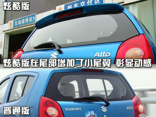 尾部我们要分为两个位置来看,首先是偏上一点,刹车灯位置。长安铃木为新奥拓炫酷版加装了一个小尾翼,这个尾翼的功效一方面可以为车辆带来一些稳定作用,还可以在白天为高位刹车灯遮遮光,让后面的车看的更清晰一点。