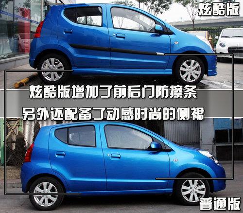 当我们第一眼看到炫酷版的时候,我们一眼很难发现它为什么叫炫酷版。如果你对新奥拓并不了解的话,也许你也看不出它有什么新奇之处。让我们先从车头看起,没有错,炫酷版只是在普通版的基础上,在保险杠上加装了一个小包围,为普通版圆滚滚的车头造型增添了一份犀利。