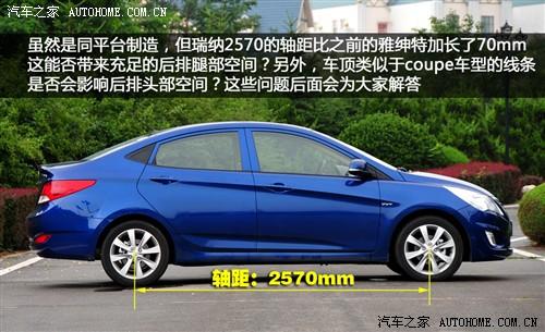 VERNA瑞纳和雅绅特是同平台产品,但是在车身尺寸上已经全面超越,首先轴距就增加了70mm,并且车身长度增加20毫米,车身宽度增加5毫米,而限于整体流线的造型,高度则降低20毫米。样的尺寸和同级别对手相比优势不是太明显,不过轴距却的确有些优势,这样就让我们对后排空间的改善有了期待,当然也担心头部空间是否会受到影响,而这些问题我们随后都会一一解答。
