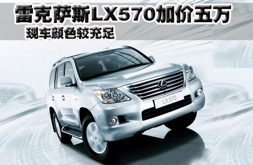 编辑从北京地区雷克萨斯4S店了解到,目前北京地区缓解了2010年初起因供应紧张的加价10万的局面,现购买雷克萨斯LX系车型出现了较上段时间加价十万相对优惠的仅加价5万的现车销售,颜色有黑、白、红少量可供选择。如果选择其他颜色,交车款的30%的定金,最多等待2个月消费者便可提车。如消费者有兴趣的话,可以致电经销商处详询。由于北京汽车市场变化较快,各店所销售车辆颜色可能会有所差异。