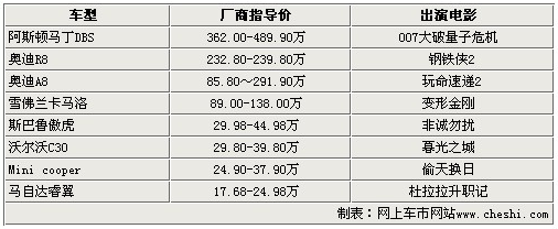 以上8款电影用车都是我们比较熟悉的,从温馨的爱情片,到紧张的动作片,甚至是虚无缥缈的科幻片,都有它们的参与。汽车已经不仅仅是我们生活中的交通工具了,很多时候,我们可以通过电影来表现出它们的生命,并且已经逐渐成为我们生活中的重要组成部分。