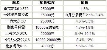但是今年很奇怪,一边是疯狂降价,一边部分车型的加价情况愈演愈烈,尤其在省外市场上,2010款路虎揽胜5.0车型的加价额度在18万-20万元,雷克萨斯GX460的加价额度为11万,加价幅度几乎占到了车价的10%以上,据说最高一个城市的加价比例为25%。