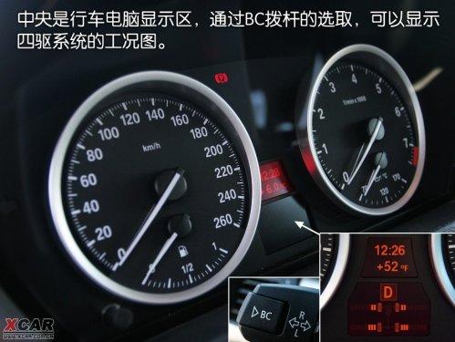 通过复杂的越野路况肯定不是宝马X6的强悍,人家毕竟是SAC(运动型多功能跑车)。但宝马xDrive的动态行驶控制系统,通过后桥上的差速器,利用电动机和一组复合齿轮和两个离合器在前后桥同时实现动力的分配转移。换句话说,宝马xDrive能在保持前后动力分配比率的同时,向车身一侧车轮传递动力。值得指出的是,作为一款所谓运动型多功能轿跑车,X6尽管不具备奔驰GL那样的底盘调节功能,但25.1°的接近角和达到25.5°的离去角已经很够格,达到甚至超过了很多SUV的水平。