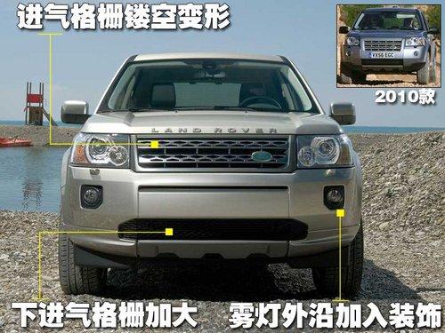 2011款神行者2相比2010款前脸变化不是特别大,没有加入流行的Led日间行车灯,首先是进气格栅的镂空孔的形状发生了改变,下进气格栅由原来方正的造型变成了大嘴的造型,另外在圆形雾灯的外沿加入了塑料装饰,呈现出了比较方正些的造型。