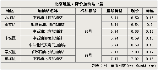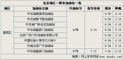 作为北京最中心的四个城区,东城、西城、宣武、崇文在汽油价格方面的反应敏感度相对较低,93号汽油最高只有0.2元的降幅,97号汽油最高只有0.17元降幅,涉及的加油站共有15家。