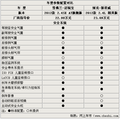 定位不同 2012款迈锐宝、新君威配置对比(5)