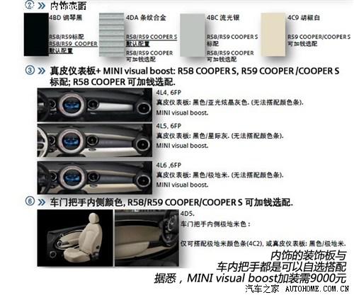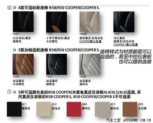 内饰部分,MINI COUPE提供的选择性也是非常多。例如,如果COUPE选装条纹合金和流光银的饰板需加钱选装。座椅方面,包括座椅的材质、颜色都有丰富的选择性,低配的COUPE可以加钱选择真皮仪表板。