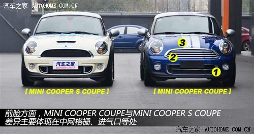 MINI COUPE两款配置车型之间的差异与MINI COOPER几乎没有区别,像MINI COOPER一样,一眼就能看出不同配置车型的差异。S COUPE与COUPE前脸处区别主要体现在中网格栅、发动机进气口等处。
