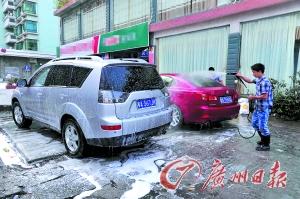 目前广州许多洗车档纷纷涨价。记者王燕摄