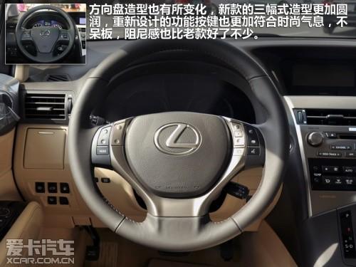 新款的RX270在方向盘上做了一些更新,皮质材料包裹加上哑光银色的装饰,无论从手感还是视觉感受上都比老款加强了不少。