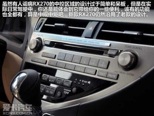 RX270的中控设计虽然谈不上时尚动感,但确实功能齐全,操作起来也很方便,按键和旋钮的阻尼感依然很不错。