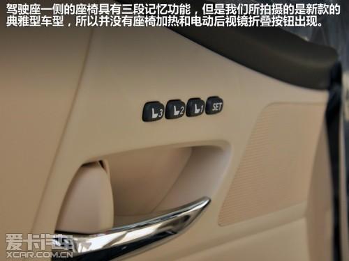 驾驶座一侧的座椅具有三组记忆功能,但是我们拍摄的是典雅版车型,所以在这里并没有座椅加热功能按键和后视镜折叠按键出现。
