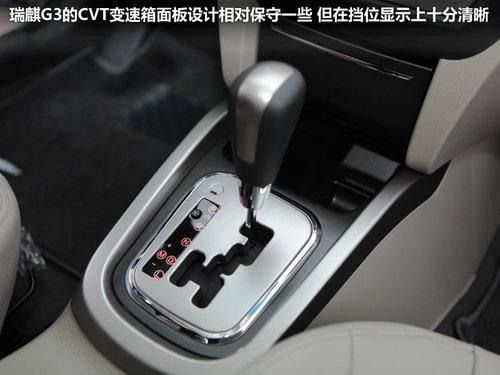 瑞麒G3此次搭配了相同的动力组合方案,对于高端品牌所追寻的舒适性有了进一步提升,其CVT变速箱还带有可7速模拟的手动模式,觉得在Auto模式下无趣的朋友也可以增进驾驶乐趣,同时在瞬时超车的情况下也能有更迅捷的表现。