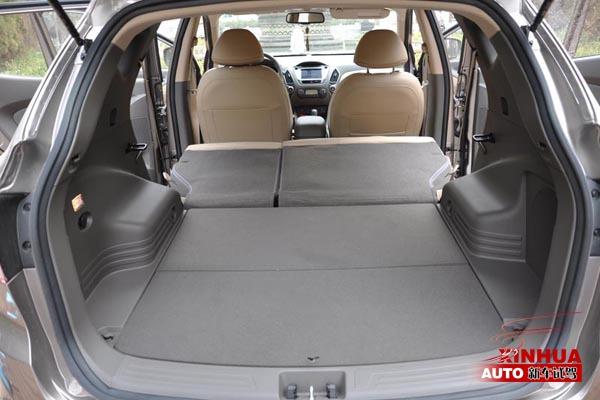 作为一款SUV车型,后备箱的实用性和储物能力自然是消费者非常关心的问题,ix35后备箱开口很大,便于取放大件物品,后排座椅可采用4/6分方式放到,如果将后排座椅完全放倒,可以形成一个平整且巨大的后排空间,足以满足消费者的日常需求。