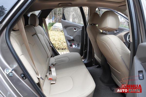 得益于2795mm的轴距,ix35后排腿部空间优秀,几乎可以翘起二郎腿,头部空间也十分充裕。后排座椅倾斜角度符合人体工程学设计,正常坐姿即使长途行驶也不会感到很疲劳。