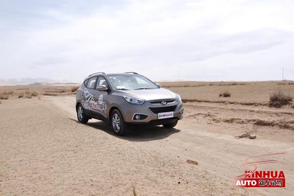 在本次试驾过程中厂商为我们安排了一段越野路线,该路线主要由沙地组成。尽管ix35被定位为城市SUV,并不是为越野而生,但ix35凭借较高的底盘和智能电子控制四驱系统,同时选择正确的行进路线,应付这样的路况还是游刃有余的。