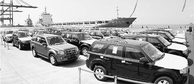 图为21辆越野车从钦州保税港区上岸。新华社记者 张爱林摄