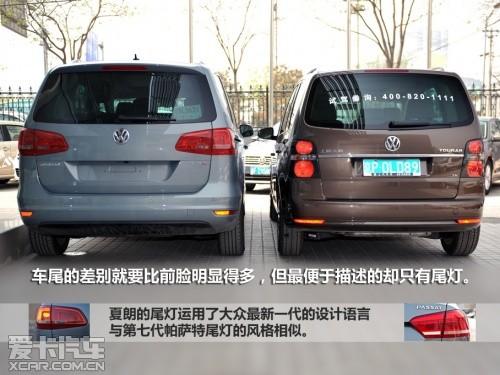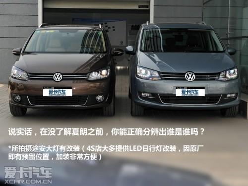赶巧我们拍摄的这台途安还进行了大灯改装,在加装LED日行灯后,与夏朗的区别更小了。基本上前脸最大的区别是雾灯,夏朗为长条形途安为圆形。当然,车体大小、车标大小、反光镜也都有所差别,但从远处真的很难准确辨认。不过除了前脸,这哥俩的侧面和尾部就很好辨别了。夏朗是滑动门侧面有滑轨;尾灯的差别也十分明显,肯定不会混淆。