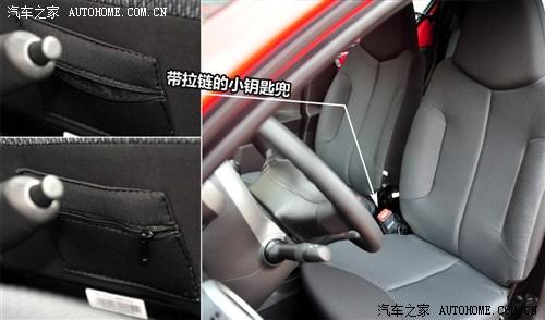 另外,为了消费者进入车内能方便的放置车钥匙,在驾驶席座椅的右侧靠近手刹的位置,还增加了一个带拉链的小钥匙兜。虽然此处小的设计比较贴心,但是位置隐蔽,难免车主下车的时候忘记把钥匙带出来……