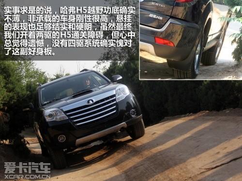 最后总结:哈弗H5的越野底子确实不错,在此后一系列的路况下都相对顺利的通过,但整个过程中我们也的确步步惊心,这多少是因为它缺失的那套四驱系统。哈弗H5四驱版带有一把中差锁和低速挡,相比较这款两驱而言,提升可就不是一丁半点了。对于仍旧偏向于选择两驱版的朋友我们也建议选装一套差速器锁,或许这会多花一些钱,但换个角度想这样才更加发挥出了H5非承载车身的底盘价值。(莫让)
