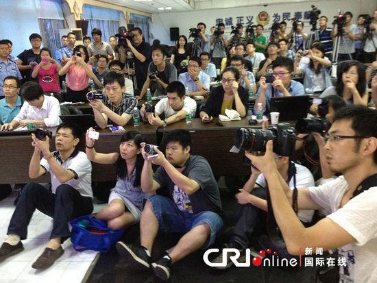 2012年5月28日,深圳交警召开“5·26交通事故”新闻发布会,就该事故有关问题进行通报。通报会现场,记者进行追问。(来源:国际在线)