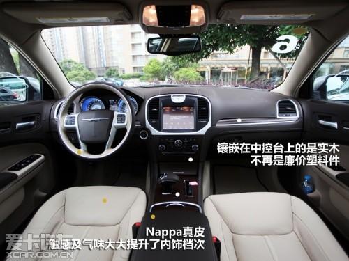 首先,在车内几乎找不到塑料件,上下各处都被Nappa真皮、实木、绒布覆盖着,这回300C算是真的体现出了中高级车的身份特征。