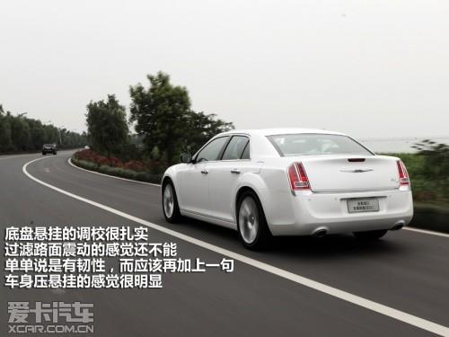 前面也提到300C并不像行政级车型那么重视后排乘客,所以3052毫米的轴距也并不是专门讨好后排乘客用,倒是像为营造较短的前、后悬而为之。但是并不觉得它笨重,相反驾控感相当紧凑。真皮缝合的方向盘的握感很好,加上偏沉的转向力,还有不错的路感回馈和方向回正力,开起来的感觉是那种带有几分厚重的运动感。