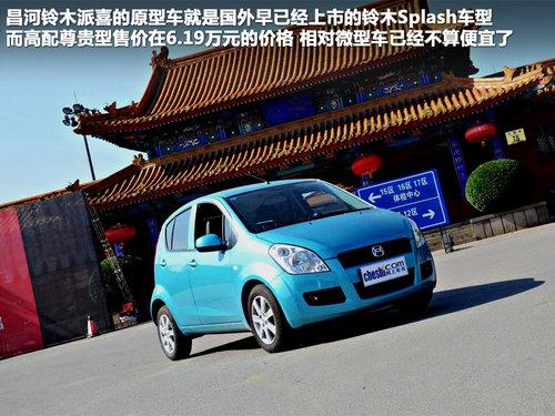 昌河铃木派喜原型车也就是国外早已经上市的铃木Splash车型,售价从5.49万元-6.19万元,配置车型分为精英型、豪华型、尊贵型。虽然与同门师兄奥拓同为微型车行列,但是派喜的定位却是更加精致的小车。