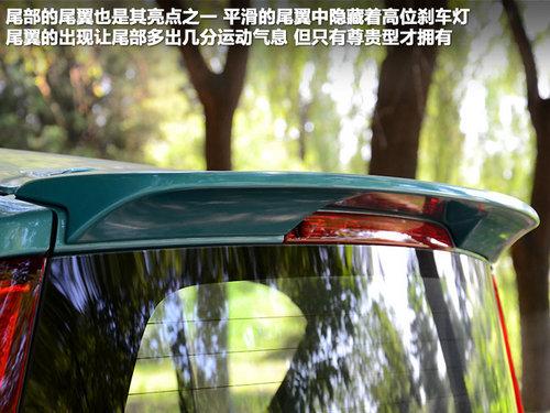 饱满的尾部设计动感时尚,突出的后保险杠让整个后部立体感十足。较长的尾灯采用了弓形设计,这个设计让尾灯具有一定立体感。 尾部的尾翼绝对是派喜亮点之一,平滑的尾翼中隐藏着高位刹车灯,尾翼的主要作用还是增加整车的运动范,但这个配置只有顶配的尊贵型才拥有。