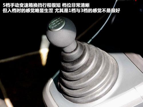 派喜采用的5档手动变速箱,档位行程很短,而且档位也比较清晰。但是入档的时候会感觉到有些生涩,尤其是1档与3档的感觉不是很好。离合器踩踏行程很长,同时离合器接合点也很高,这样会使驾驶员在频繁换挡后感觉到腿部劳累。