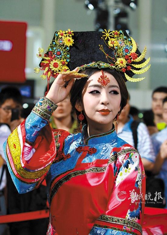 而在武汉举行的华中车展上,促销花样就更多了。当下流行的“格格”、“娘娘”、“杜甫”纷纷披挂上阵,进入车展,观众们恍若回到那些古韵悠扬的朝代,在现代科技代表———汽车的映衬下,真是别有一番滋味在心头。