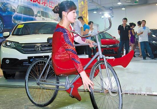 在5月25日举行的芜湖车展上,美女就在现场搞了一场静立单车表演,让观众大呼过瘾。