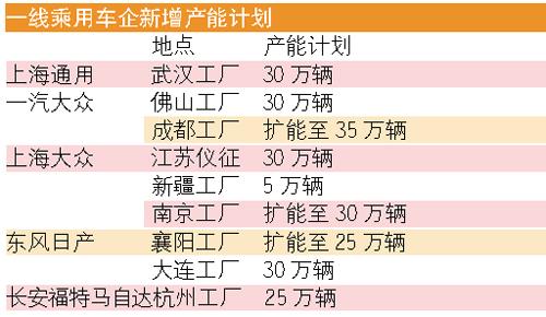 东风日产大连整车项目开工,成为近期动工的又一个大型整车项目,加上大众南下西征、上海通用进入武汉、福特杭州建厂、华晨宝马铁西工厂投产、广汽本田第三工厂筹划……近十家汽车企业在近期宣布了未来两到三年内的扩产计划,掀起又一轮扩产狂潮。