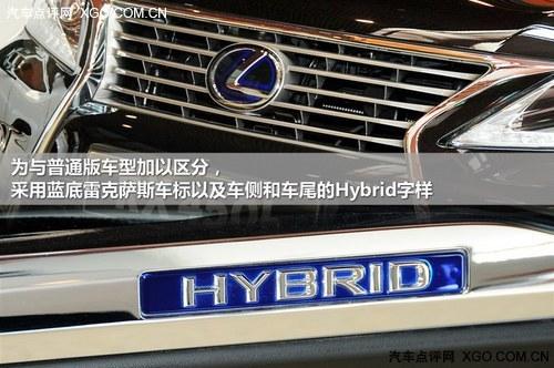 雷克萨斯RX450h刚刚进行了家族化的改款,纺锤体的前脸造型使得RX450h显得更加年轻富于动感。为与普通版车型加以区分,采用蓝底雷克萨斯车标以及车侧和车尾的Hybrid字样。