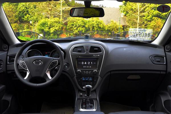 再来看车辆内部,传祺GS5带我们一个时尚而又精致的乘坐氛围。中控台明显突出的设计灵感来自于跨界车,通过颜色和形状的巧妙搭配,中控台形成了一个上宽下窄的视觉效果,但事实上下面的控制区并没有因此缩减多少。