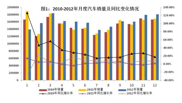 2012年,我国汽车市场保持平稳增长态势,产销量月月超过120万辆,平均每月产销突破150万辆,全年累计产销超过1900万辆,再次刷新全球历史纪录。