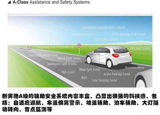 在配置上,新奔驰A级则突出的是科技感和豪华感。全系标配了桶形运动座椅、3幅运动方向盘、氙气大灯以及多区自动空调等,而根据车型的不同,还将配备自动停车辅助系统、方向盘换挡拨片、带记忆功能的电动座椅、全景天窗、注意力警示系统、Audio 20音响系统,同时这套音响系统也能够支持与手机的连接。