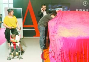新车还未发布,有人已忍不住掀开“红盖头”“偷窥”。记者杨勤摄