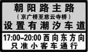 在17时至20时,将主路进城方向的一条社会车道,改为出城方向机动车使用,其他时段维持现状通行方式。目前朝阳路主路(京广桥至慈云寺桥)为双向各两条车道,各有一条快速公交专用道。设置潮汐车道后,东向西进城方向的快速公交专用道不受影响,其他社会车辆全部改走主路外侧的三条辅路。