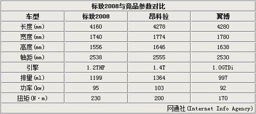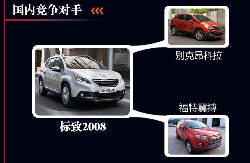 标致2008定位于小型SUV,国内同级竞争对手将锁定在别克昂科拉和福特翼搏两款车型上。从参数对比上来看,2008并不具备明显优势,但在车身配置和个性化上与之竞争。