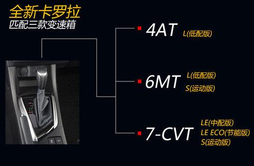 在海外市场中所发布的两种动力引擎,未来在国产后后带有VVT-i的有望被引入,改款引擎最大功率为98千瓦,最大扭矩174牛米,在所公布的资料中显示百公里油耗不足6升,可见丰田在油耗的优势。而在变速箱上,丰田经典的4AT变速箱仍然被保留了下来,不过只出现在最低配车型中。7速CVT变速箱未来也会国产或许那将是全新卡罗拉的中期改款车型了。