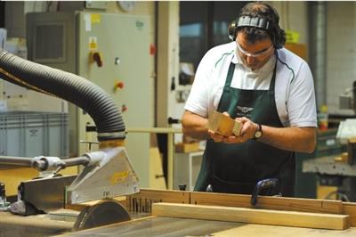 除了规模小点,宾利的冲压、喷漆、总装车间几乎与其他现代化车企没什么两样。不过最让宾利骄傲的却是最传统的两个手工艺车间:木工和皮具。