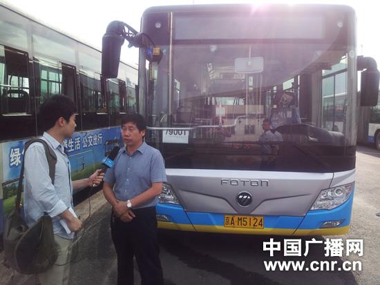 北京公交集团新能源纯电动车四惠站队长祁明瑞谈新一代新能源电动公交车优势(右一)