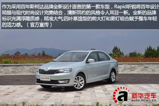 以下是厂商方面对昕锐外观的概述:作为采用百年斯柯达品牌全新设计语言的第一款车型,Rapid昕锐将百年设计精髓与现代时尚设计完美结合,清新简约的风格令人耳目一新。全新的品牌标识充满浮雕质感,精准大气;四叶草造型的前大灯和雾灯组合赋予整车年轻的活力感,蕴含幸运之意;源自捷克最著名的水晶切割工艺的设计风格使整车尽显清新灵性;完美的车身比例、简约的线条设计以及雕塑感车身令Rapid昕锐极富锋锐动感的时尚气质。