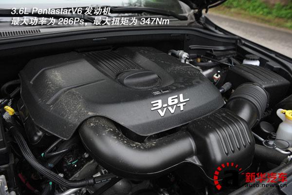 与老款车型相比,新款车型的发动机并没有变化,依然使用的是3.6L PentastarV6发动机和5.7LHEMI V8发动机,我们这次试驾的是3.6L车型。这款发动机采用双顶置凸轮轴设计、可变气门正时等技术,最大功率为286Ps,最大扭矩为347Nm。