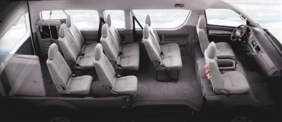 俗话说,商务车要求“有容乃大”。5420毫米、1880毫米和2285毫米的车身尺寸和3110毫米的轴距,让记者在里面写稿时相当从容。中间过道310毫米的宽度和头顶到顶棚420毫米的距离,也方便在车内移动。另外,载客能力扩充到最多14座的坐椅在多种变化后,让在里面进行打牌等游戏变得很方便。