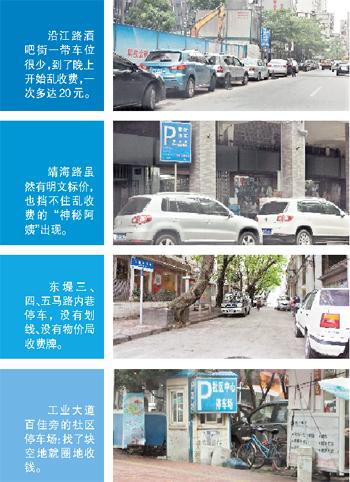 按照物价局规定的内街内巷收费标准:一、二、三类地区半小时依次收取2、1.5、1元,月保费依次为450、300和200元。东堤三、四、五马路不仅没有正规收费标识,其收费标准比一类地区还高。