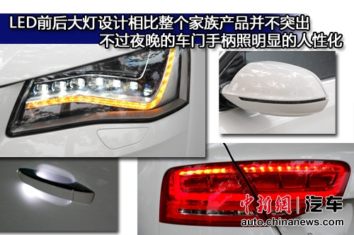 奥迪A8L前后大灯融入LED日行灯,不过相比整个家族产品前后的大灯设计并不突出。前大灯集合了随动转向功能、“回家照明”以及夜晚拉手照明功能显得很实用。